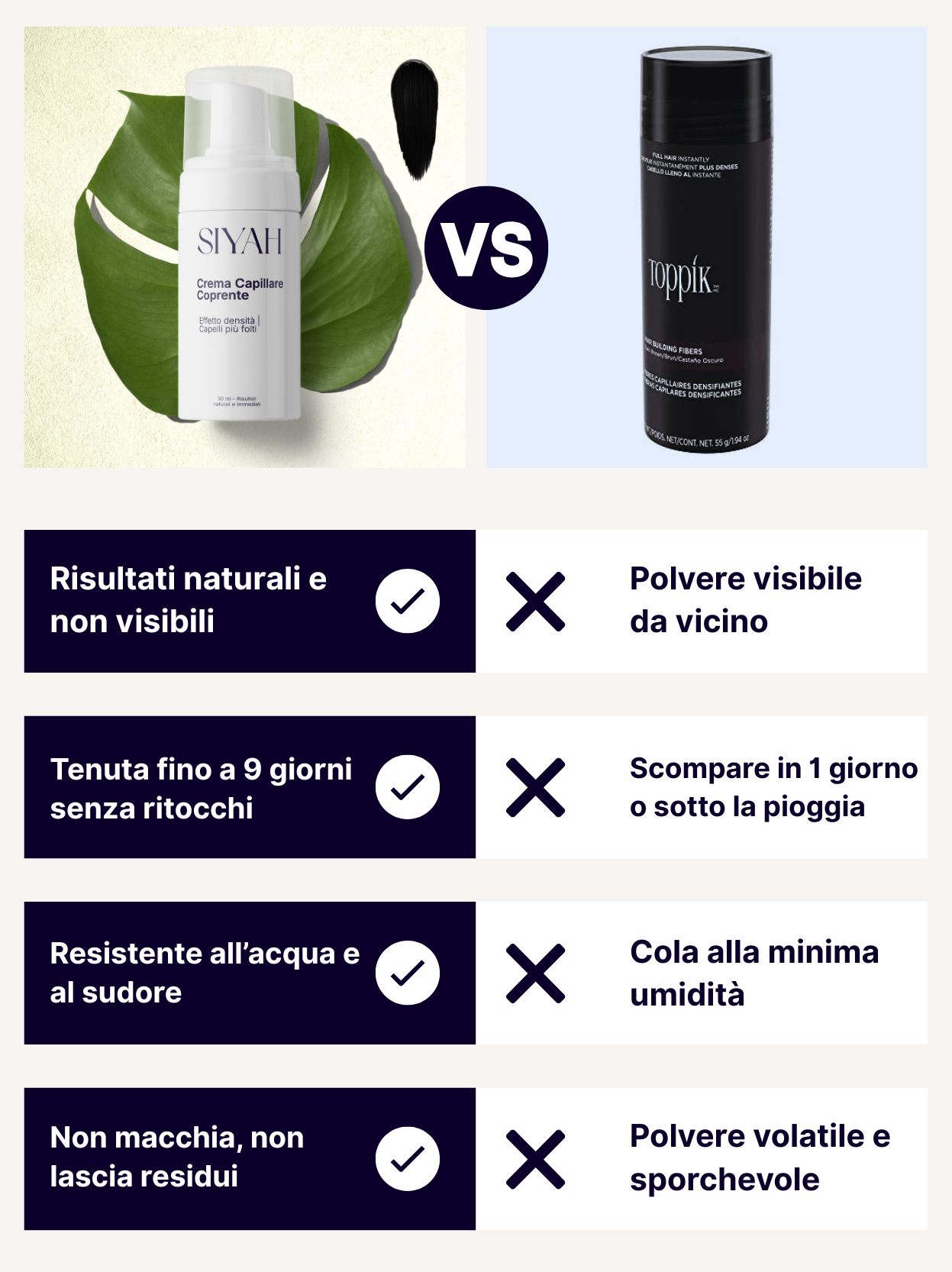 Sì. A differenza delle fibre capillari, la crema Siyah è resistente all'umidità, al sudore e allo sfregamento . Puoi uscire sotto la pioggia senza stress!