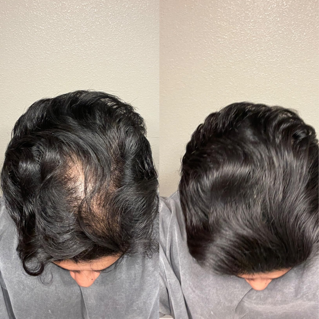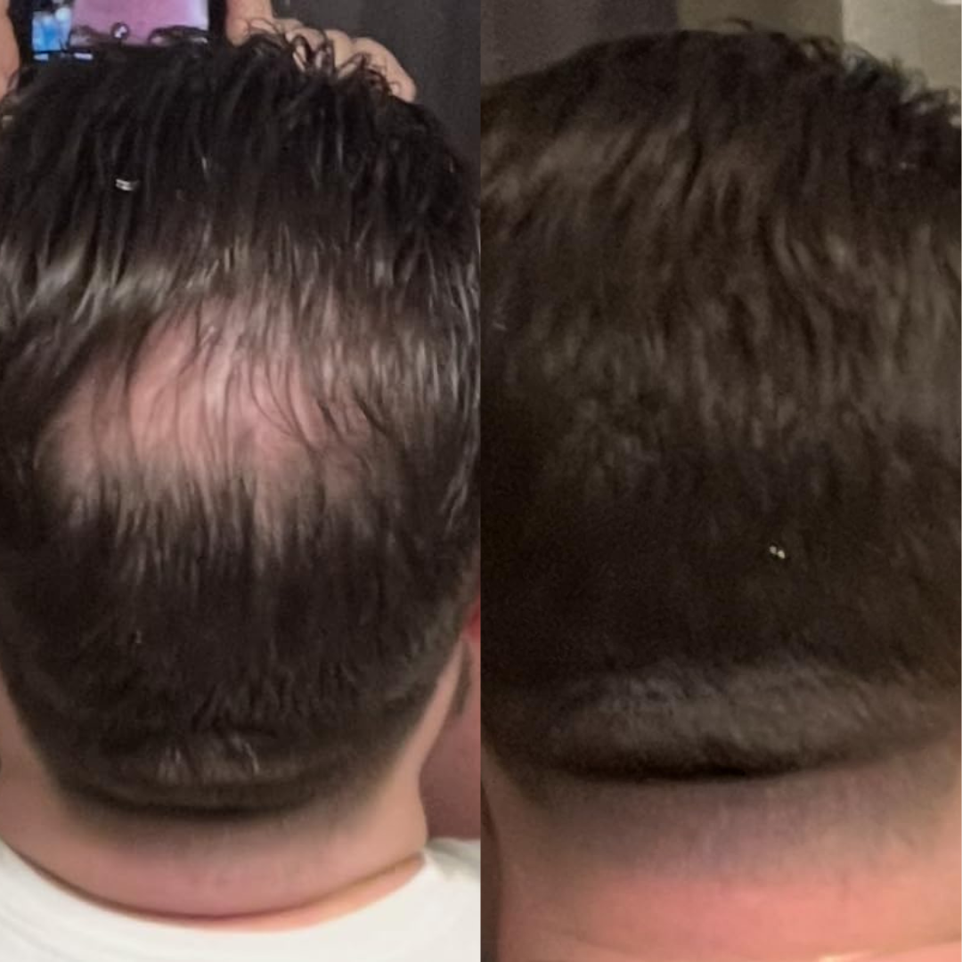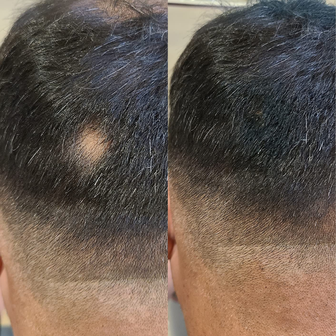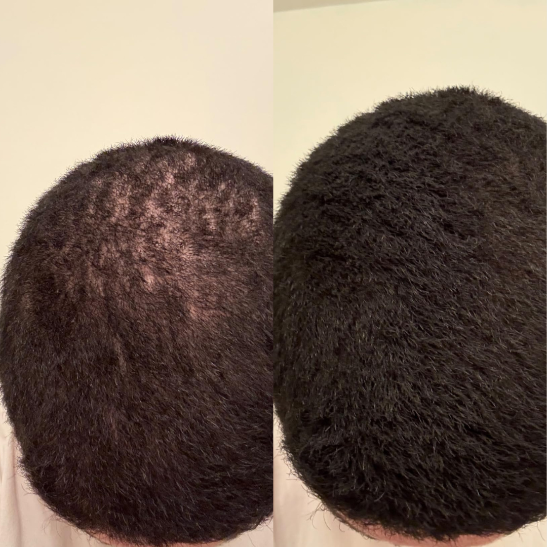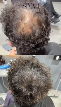 Non c'è bisogno di un trapianto di capelli o di polvere per capelli per sembrare meno calvi. Qui, puoi vedere chiaramente la differenza dopo una sola applicazione di Siyah.