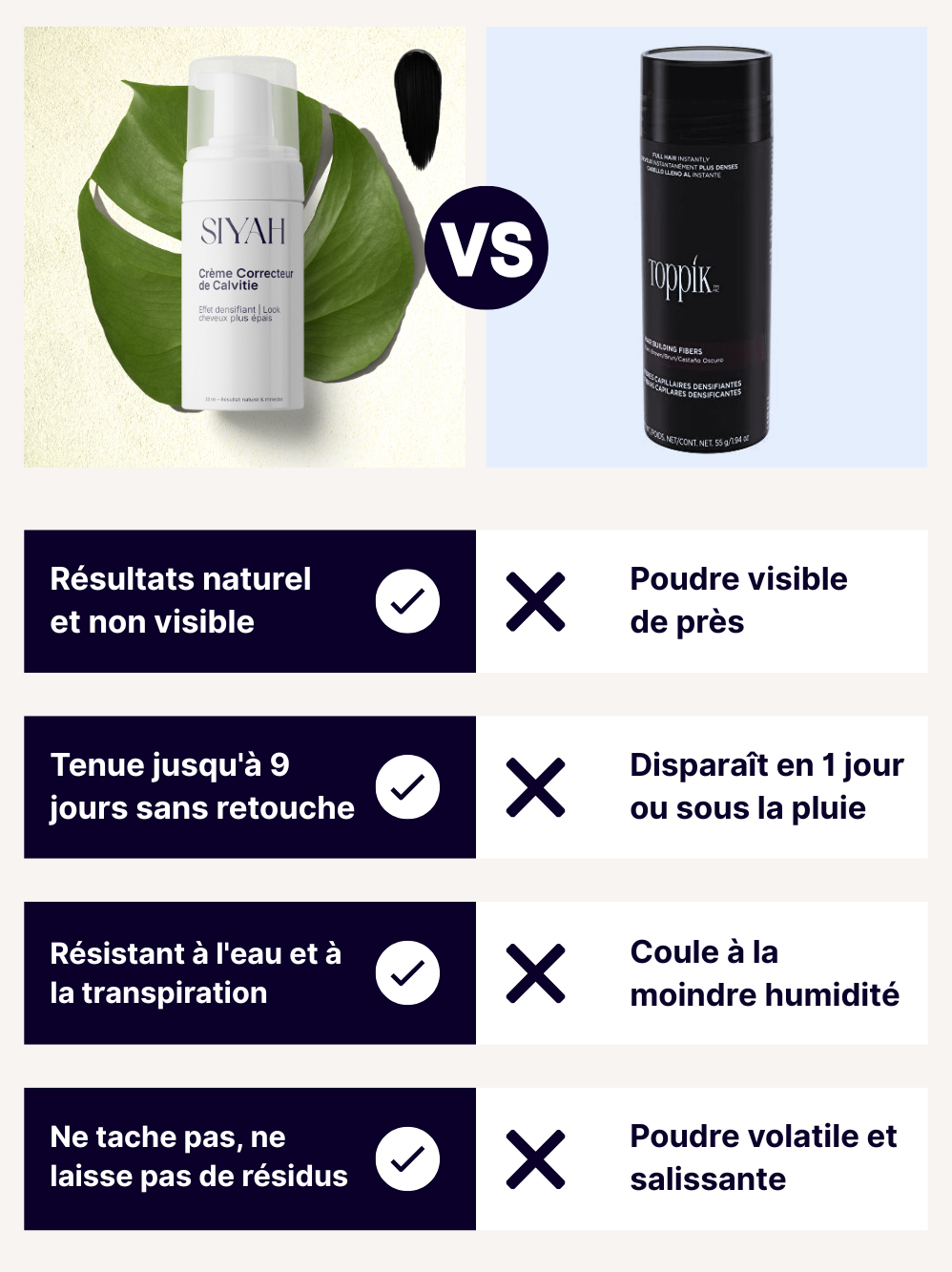 👉 Siyah è una crema per capelli discreta che mimetizza le zone diradate , con una finitura opaca e naturale che dura fino a 9 giorni .